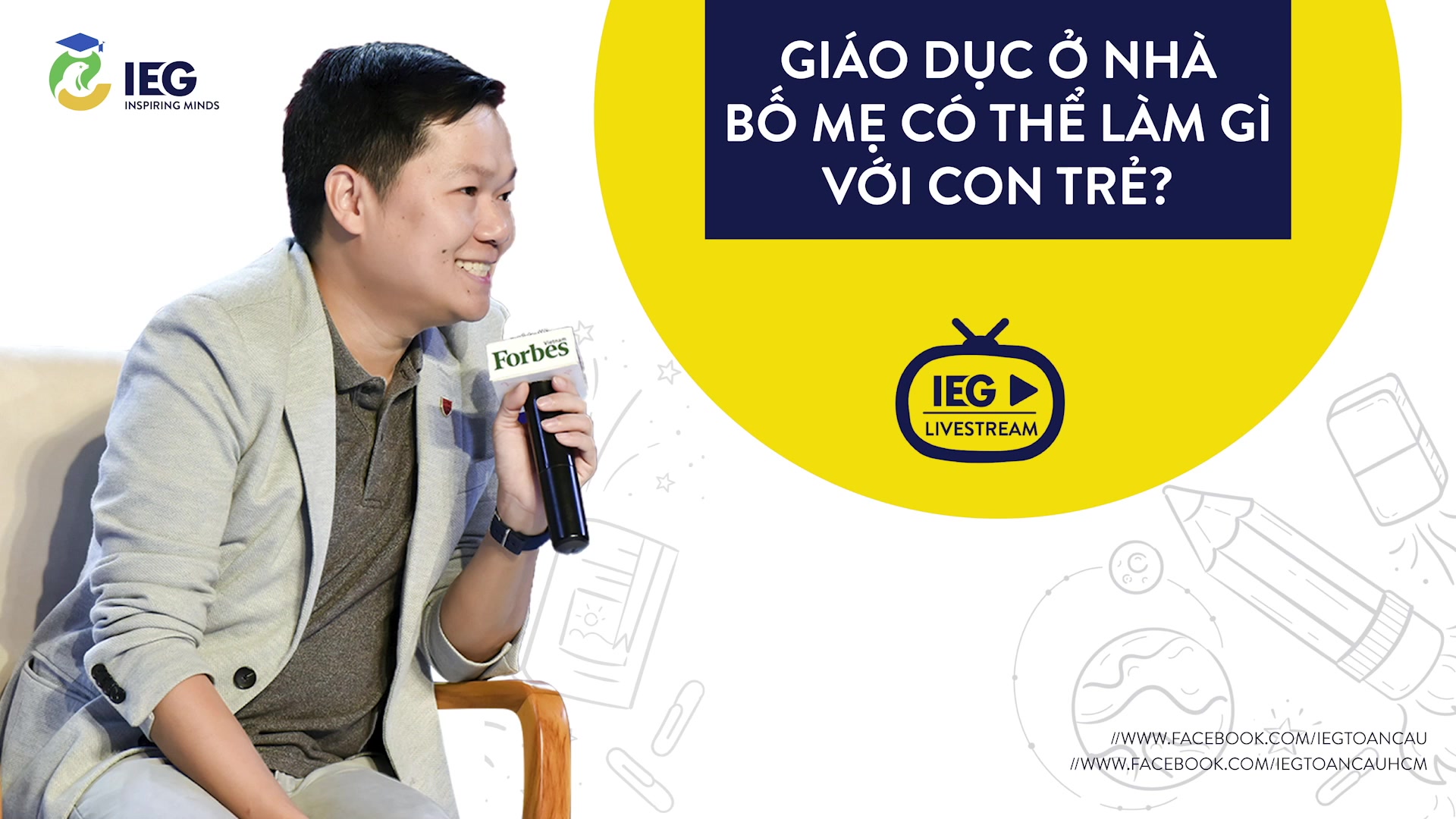 Tiếp nối những câu chuyện được chia sẻ trong buổi tọa đàm đầu năm nay của IEG về việc dạy và học trong thế giới mới, chuỗi trò chuyện trực tiếp (livestream) khởi động năm 2021 sẽ là một cầu nối, nơi kết nối phụ huynh với phụ huynh, giải đáp những thắc mắc hay trăn trở của phụ huynh trong việc giáo dục con trẻ trong thời đại số và thế giới mới với nhiều những quy chuẩn khác nhau, dù là ở nhà hay tại trường dưới góc nhìn của một người làm giáo dục - TS. Nguyễn Chí Hiếu.