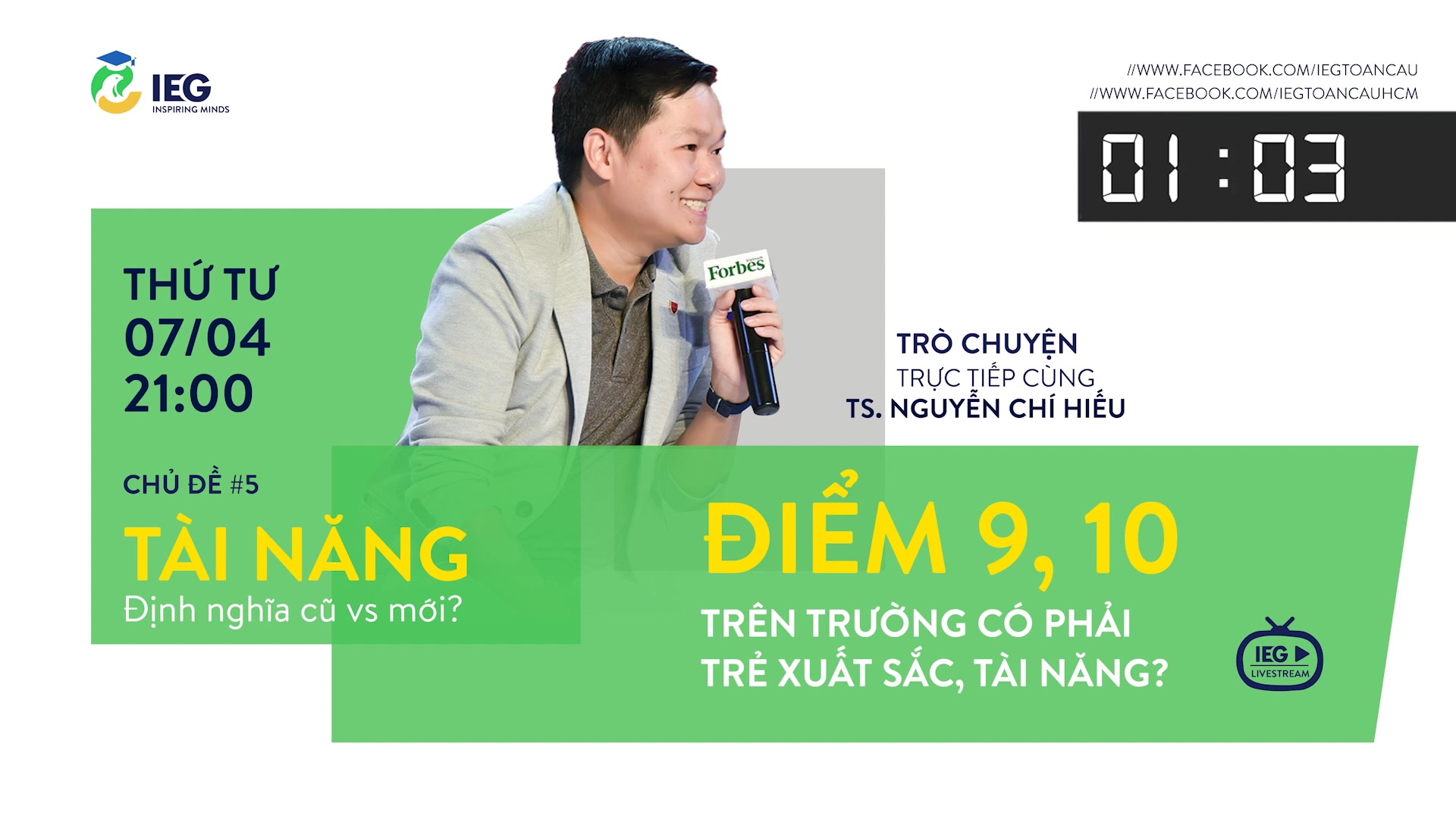 Thời gian livestream 21:00 tối Thứ Tư (31/03/2021) trên 2 fanpage IEG Global & IEG Global Ho Chi Minh