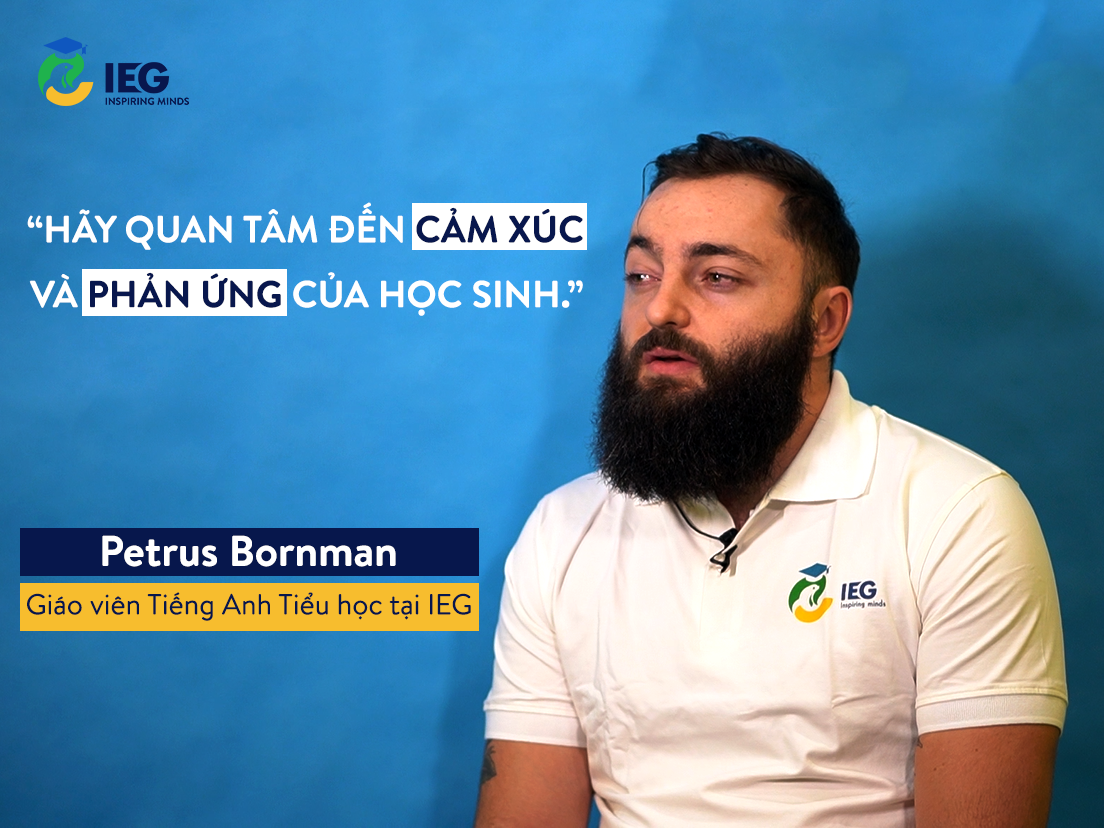 G.K.Chesterston từng nói "Giáo dục đơn giản là linh hồn của một xã hội khi nó được truyền từ đời này sang đời khác." Lời nói này không chỉ giúp Petrus Bornman - Giáo viên Tiếng Anh Tiểu học tại IEG - cảm nhận rõ mục đích và ý nghĩa của công việc gõ đầu trẻ mà còn chính là lí do đưa anh tới con đường làm giáo dục.